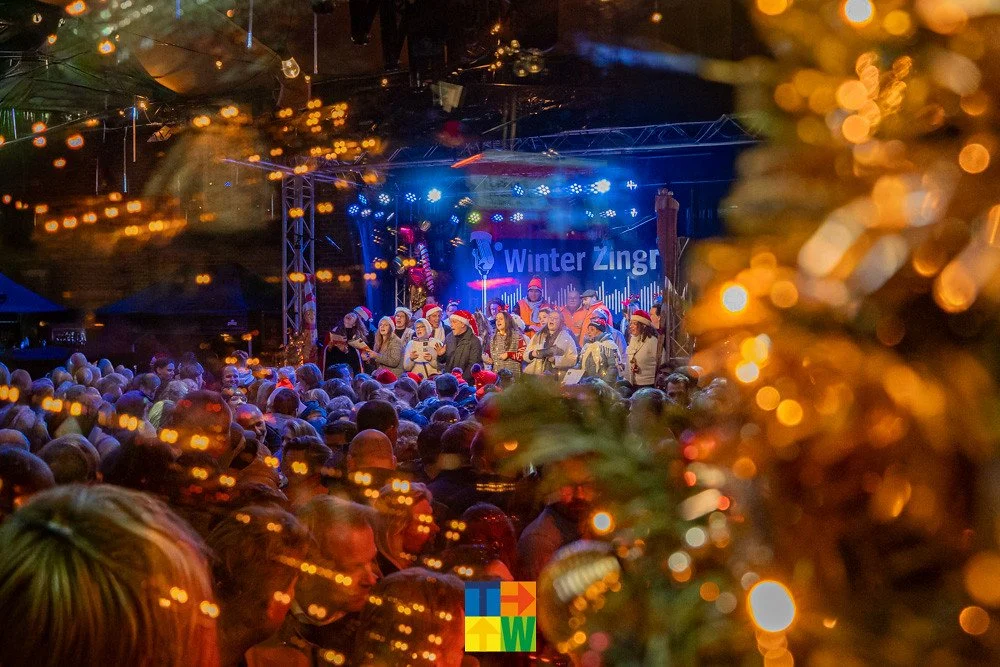 De Stadhuisstraat in Tilburg vormde zaterdag 16 december het decor van een bijzonder warm en sfeervol meezingfestijn tijdens Tilburg Winter Zingt, onderdeel van Winter in Tilburg. Wat begon als een winterse muzikale ontmoeting groeide uit tot een zeer geslaagd evenement vol samenzang, lichtjes en verbondenheid. Honderden sfeerzoekende zangliefhebbers vonden hun weg naar de binnenstad om samen de kou te trotseren en zich onder te dompelen in pure kerstmagie. De straat was omgetoverd tot een winters tafereel waar menig kerstfilm jaloers op zou zijn. Ttwinkelende lichtjes, rijkelijk versierde kerstbomen en knisperende vuurkorven zorgden voor een warme gloed. De geur van glühwijn, warme chocolademelk en dampende soep maakte het plaatje compleet en nodigde bezoekers uit om langer te blijven hangen. De hele avond stonden verschillende koren klaar om het publiek mee te nemen in bekende en geliefde kerstklassiekers. Van ingetogen winterliederen tot uitbundige meezingers: de samenzang klonk luid en hartverwarmend door de Stadhuisstraat. De enthousiaste invalpresentator Kenneth Verhoeven praatte de avond soepel aan elkaar en maakte er met de koren op het podium een groot feest van. Dankzij de inzet van Stichting Tilburg Zingt en de steun van het ondernemersfonds werd opnieuw bewezen hoe krachtig muziek kan zijn in het samenbrengen van mensen. Tilburg Winter Zingt was wederom een moment van samen genieten, zingen en verbinden. Een avond om met een warm gevoel op terug te kijken en die smaakt naar meer.