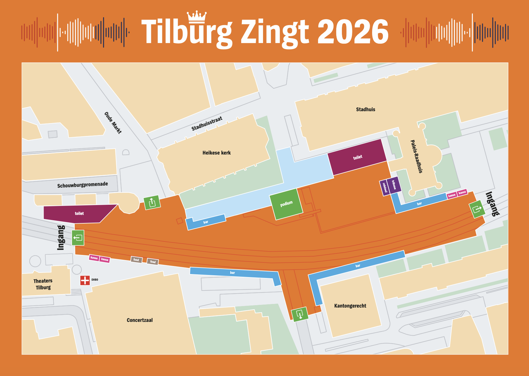 Op zondag 26 april vindt de 21e editie van Tilburg Zingt plaats op het Stadsforum. Het Stadsforum is het plein tussen de Schouwburg en het Paleis-raadhuis. Het podium vind je op het Willemsplein, naast de Heikese Kerk.